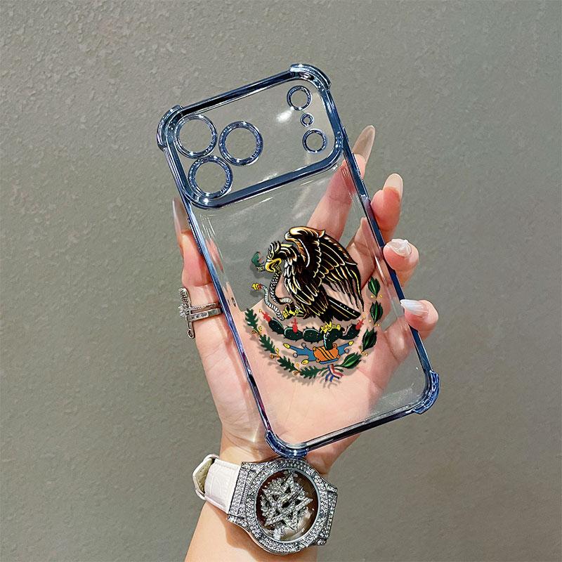 Mexican Golden Eagle Badge Flag Design Four-Angle Airbag Anti-Drop Phone Case for Iphone 17 Pro Max 16 15 14 13 12 11 Pro Max Transparent Soft TPU Material Gift Choice